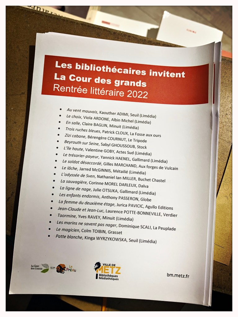 La liste des titres de cette sélection de rentrée Publié le 6 octobre 20226 octobre 2022 par La Cour des grands Présentation et sélection de la librairie et des Bibliothèques-Médiathèques de Metz Partager : Cliquer pour partager sur X(ouvre dans une nouvelle fenêtre) X Cliquez pour partager sur Facebook(ouvre dans une nouvelle fenêtre) Facebook Similaire