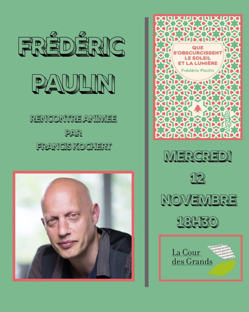 Mercredi 12 novembre à 18h30 : rencontre avec Frédéric Paulin pour son roman Que s’obscurcissent le soleil et la lumière paru aux éditions Agullo