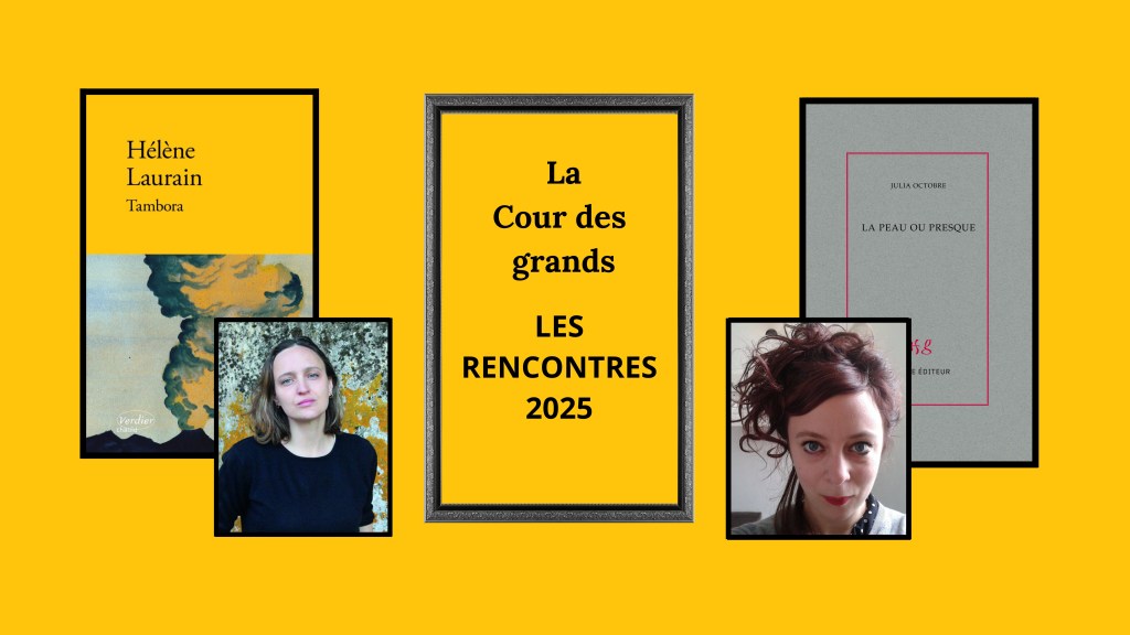 Jeudi 6 novembre à 18h30 : rencontre et lectures en musique avec Hélène Laurain et Julia Octobre pour Tambora paru aux éditions Verdier et La peau ou presque paru chez Cheyne Editeur. Accompagnement Matthias Ruthenberg